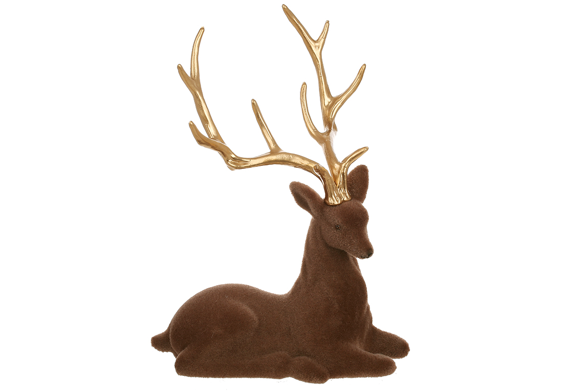 Декоративна флокова фігура Олень 21.5см, колір - шоколадний мокко із золотими рогами