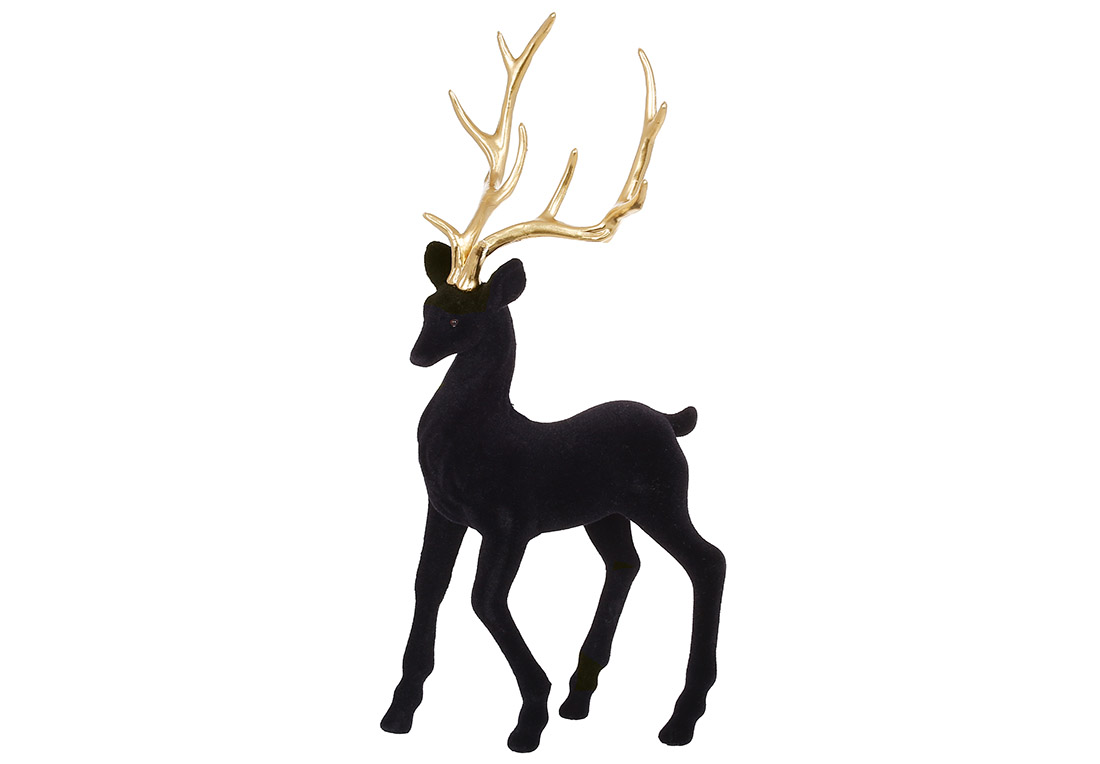 Декоративна флокова фігура Олень 32.5см, колір - чорний онікс із золотими рогами
