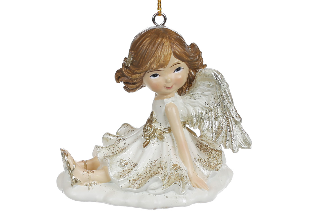 Декоративна підвіска Янгол на хмаринці, 7см, колір - білий з шампанню
