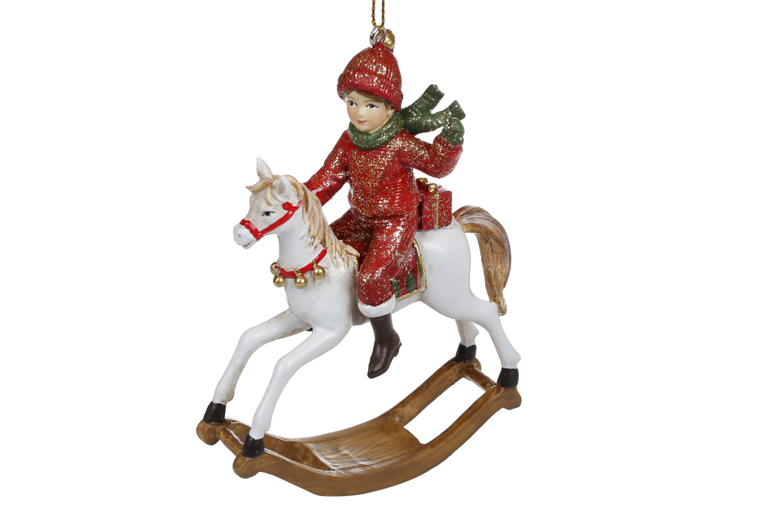 Декоративна підвіска Хлопчик на коні, 12см, колір - червоний з білим