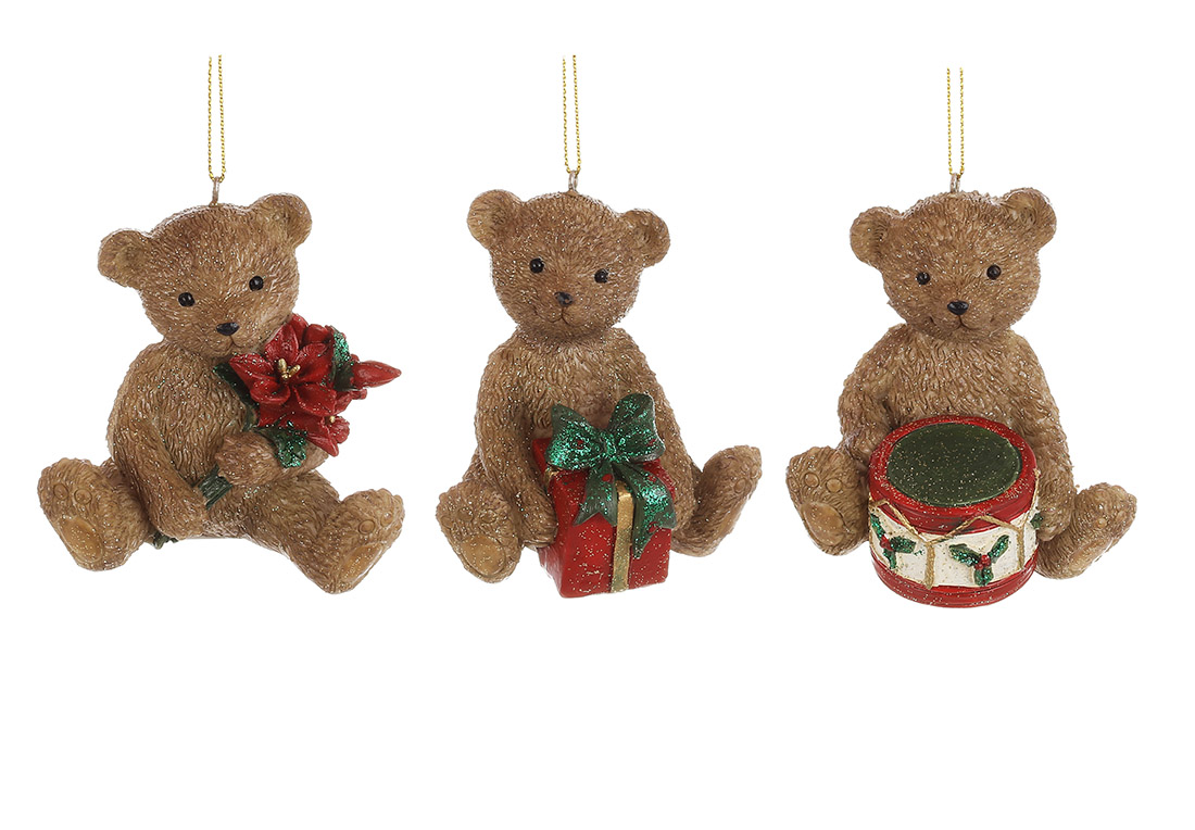 Декоративна підвіска Ведмедик Тедді 7.5*8см, колір - коричневий з червоним