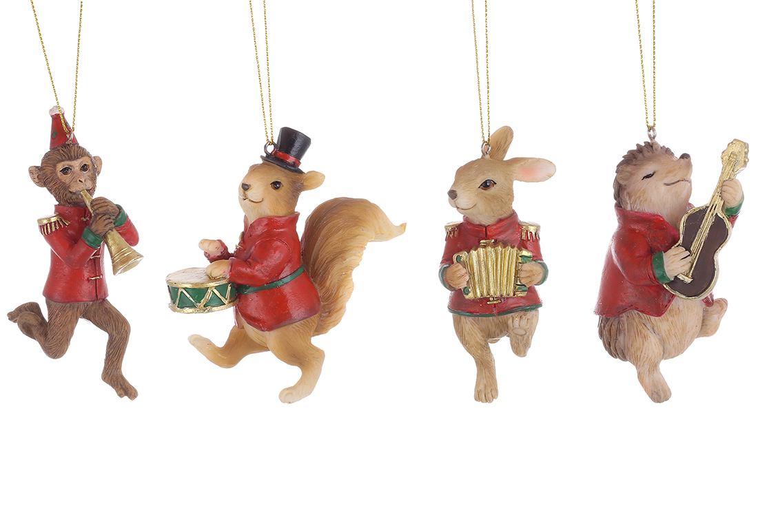 Декоративна підвіска Тварини-музиканти 5*4*10см, 4 дизайни, колір - червоний
