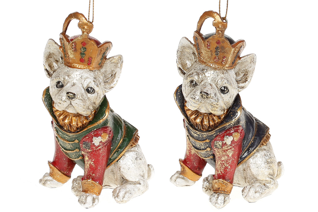 Декоративна підвісна фігурка Собака з короною, 12см, 2 дизайни, колір - бордо із синім та бордо із зеленим