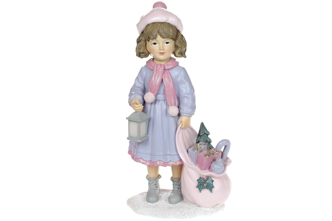 Декоративна статуетка Дівчинка на подарунки, 20см, колір - рожево-блакитний