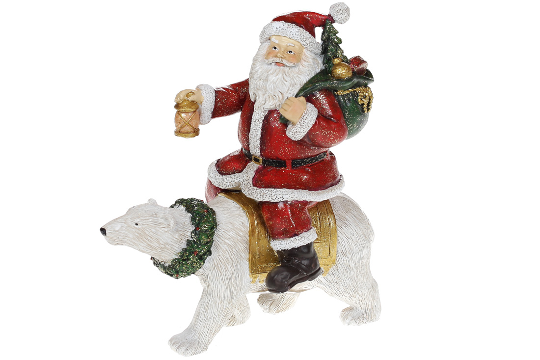 Декоративна статуетка Санта верхи на ведмеді, 17.5см, колір - червоний з білим