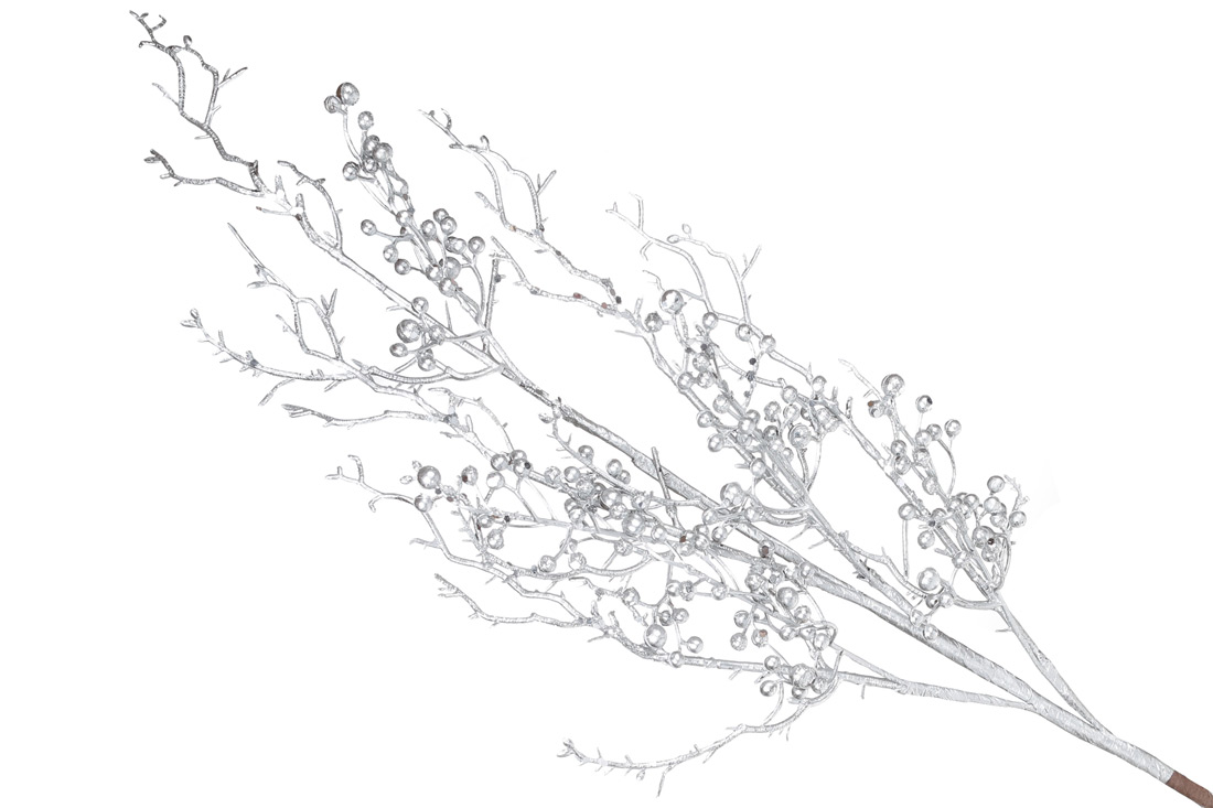 Декоративна гілка з ягодами 78см, колір - срібло