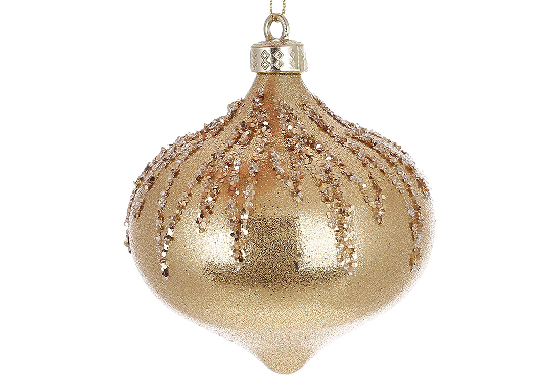 Ялинкова прикраса у формі цибулини з декором із гліттера 8см, колір - золото