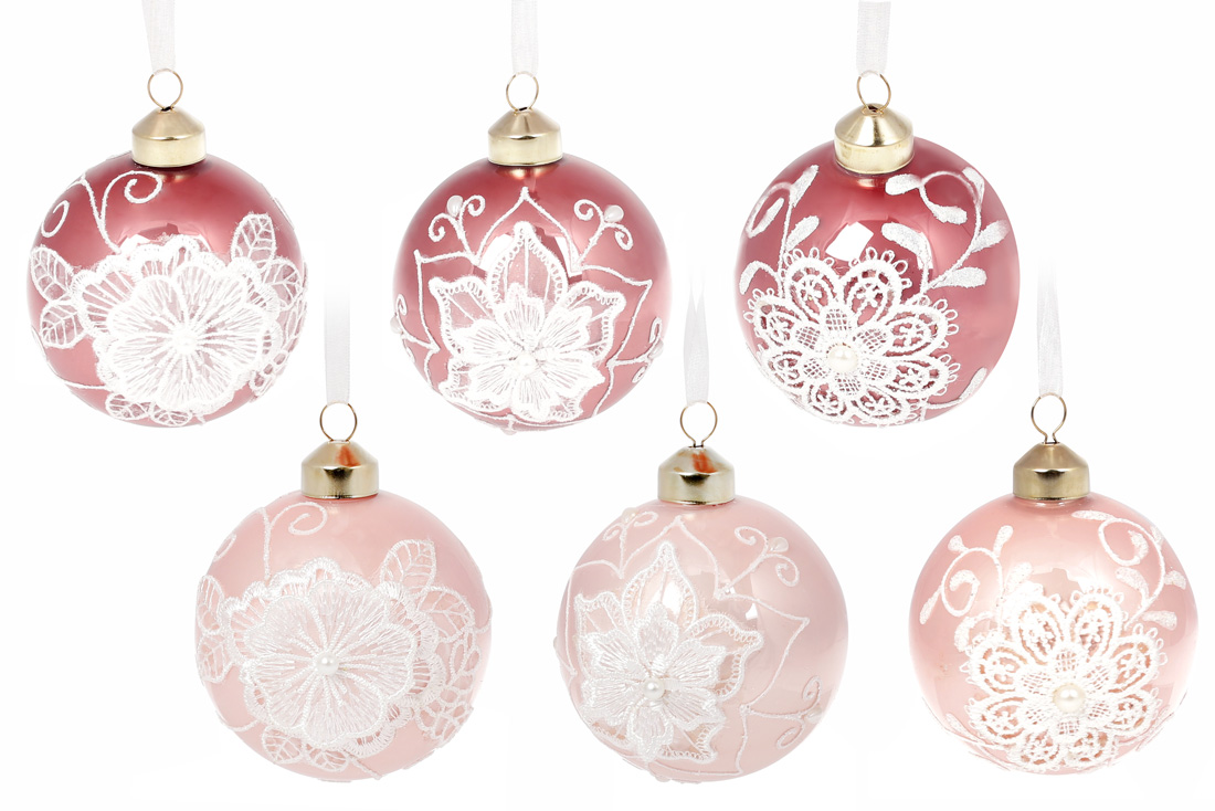 Ялинкова куля 8см Мереживо, мікс 6 дизайнів в дисплей коробці