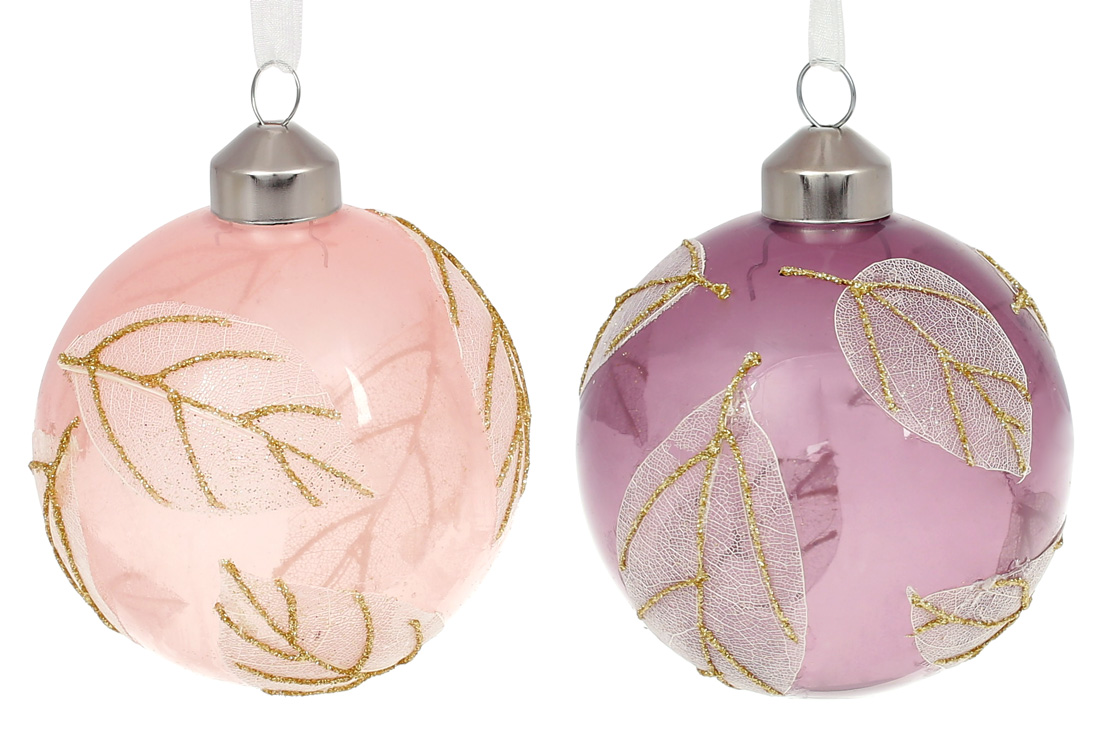 Ялинкова куля 8см Лист, прозоре скло, мікс 2 кольорів в дисплей коробці