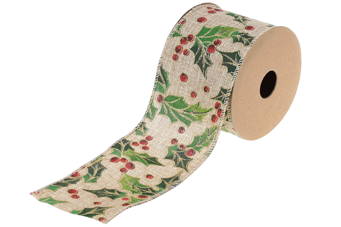 Стрічка декоративна з малюнком Падуб, 6.3*270см