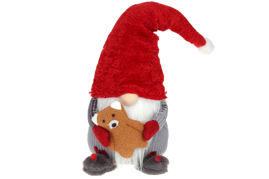 М'яка іграшка Гном з ведмедиком, 55см, колір - червоний з сірим