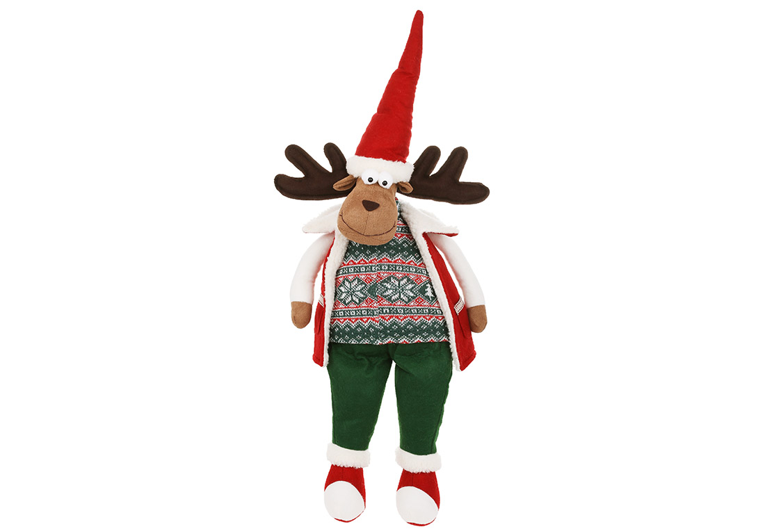 М'яка іграшка сидячий Олень у жилетці, 21*14*61см, колір - червоний із зеленим