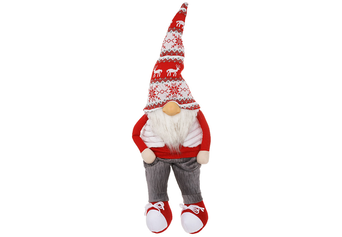 М'яка новорічна іграшка Сидячий Гном, 21*18*76см, колір - червоний із сірим