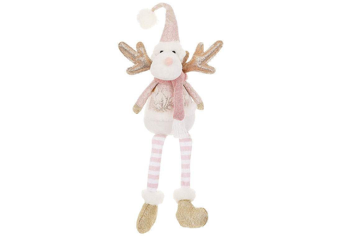 М'яка новорічна іграшка Сидячий Олень 60см, колір - рожевий із золотом