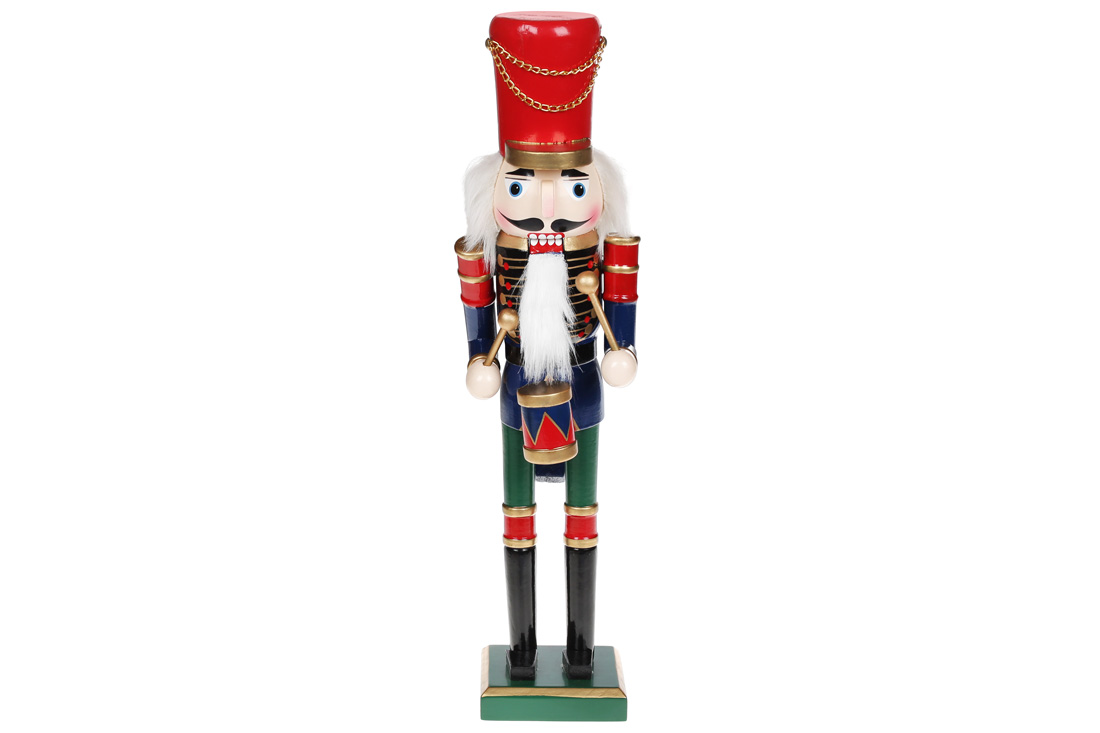 Новорічний декор Лускунчик з барабаном, 38см, колір - червоний із синім та зеленим