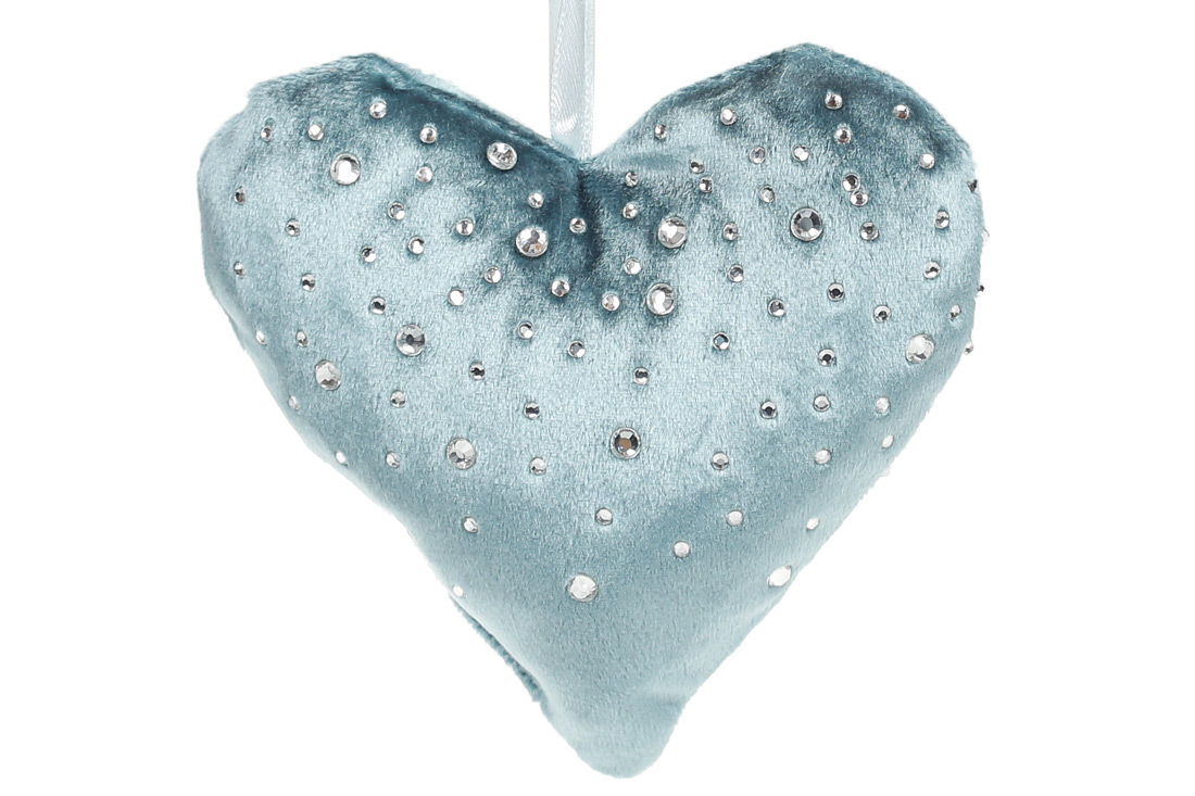 Підвісний оксамитовий декор зі стразами Серце, 13см, колір - бірюзовий вінтажний