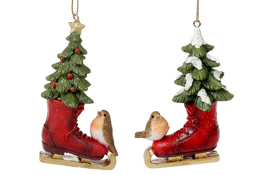 Підвісний декор Ковзани, 2 дизайни, 8см, колір - червоний