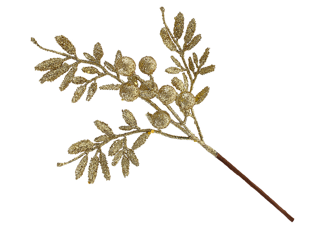 Гілка з листям та ягодами в гліттері 35см, колір - золото